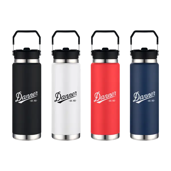 Big thirst? Meet the Manchester 30oz Vacuum Water Bottle—your hydration heavyweight. Designed to keep your drinks icy cold or satisfyingly warm, this bottle boasts double-wall stainless steel construction with copper lining for serious temperature control. The screw-on lid features a flip-up straw for easy sipping and a sturdy handle that makes carrying a breeze, whether you're heading to the gym or exploring the great outdoors. With its powder-coated finish, it's as tough as it is stylish, and best of all, it's BPA-free. From sunrise hikes to all-day meetings, this 30oz companion has the size, durability, and convenience to keep you refreshed mile after mile. 10.44" H x 3.43" Diameter