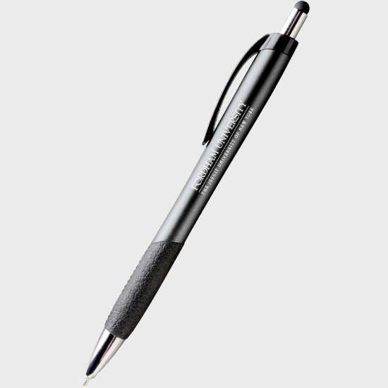 Metallic brights contrast with black and chromes accents for a bold statement. Ergonomic contoured shape with handy stylus tip. Seam stitching detail gives grip the look of leather. Supersmooth writing blue hybrid ink.