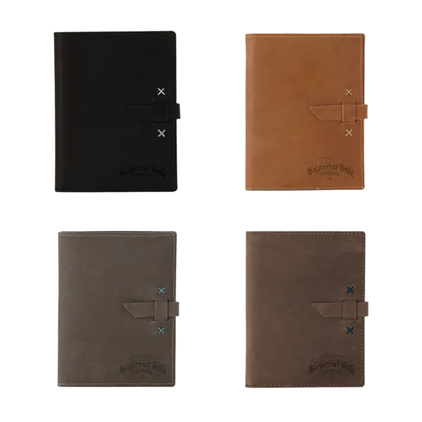 Folio fold it. Fashion it from pure leather. Stitch it. Now give it pockets. Deboss it. Now whatever you do next is more than a mere task. You are homo faber – the human creator. Master of the list….brand that. Choose from domestic, USA Made, leather colors and customize to match your company logo with Irish waxed linen accent stitching colors. Complies with Prop 65. 6.5" W x 8.625" H