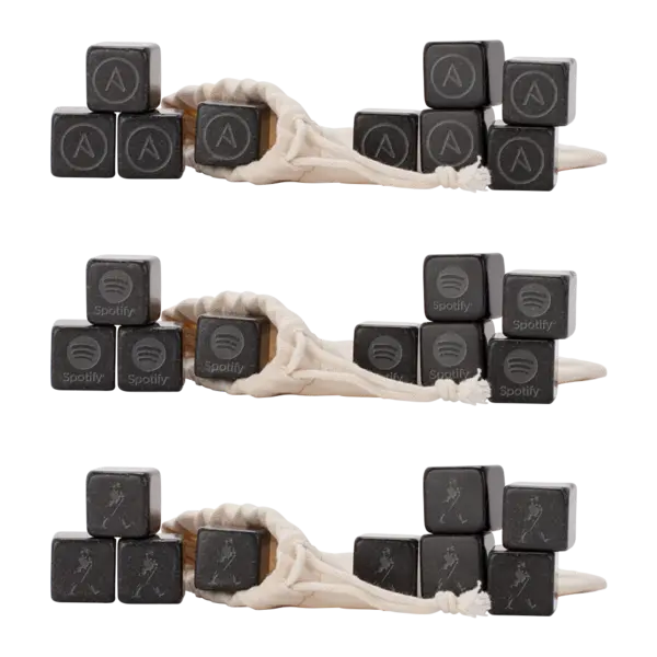 The elegant MOCCASIN set has 9 laser etched whiskey stones that are placed within a simple muslin bag. Includes a 3.5" X 2" whiskey stones instruction card. Complies with Prop 65. 3.25" W x 4.75" H x 1" D