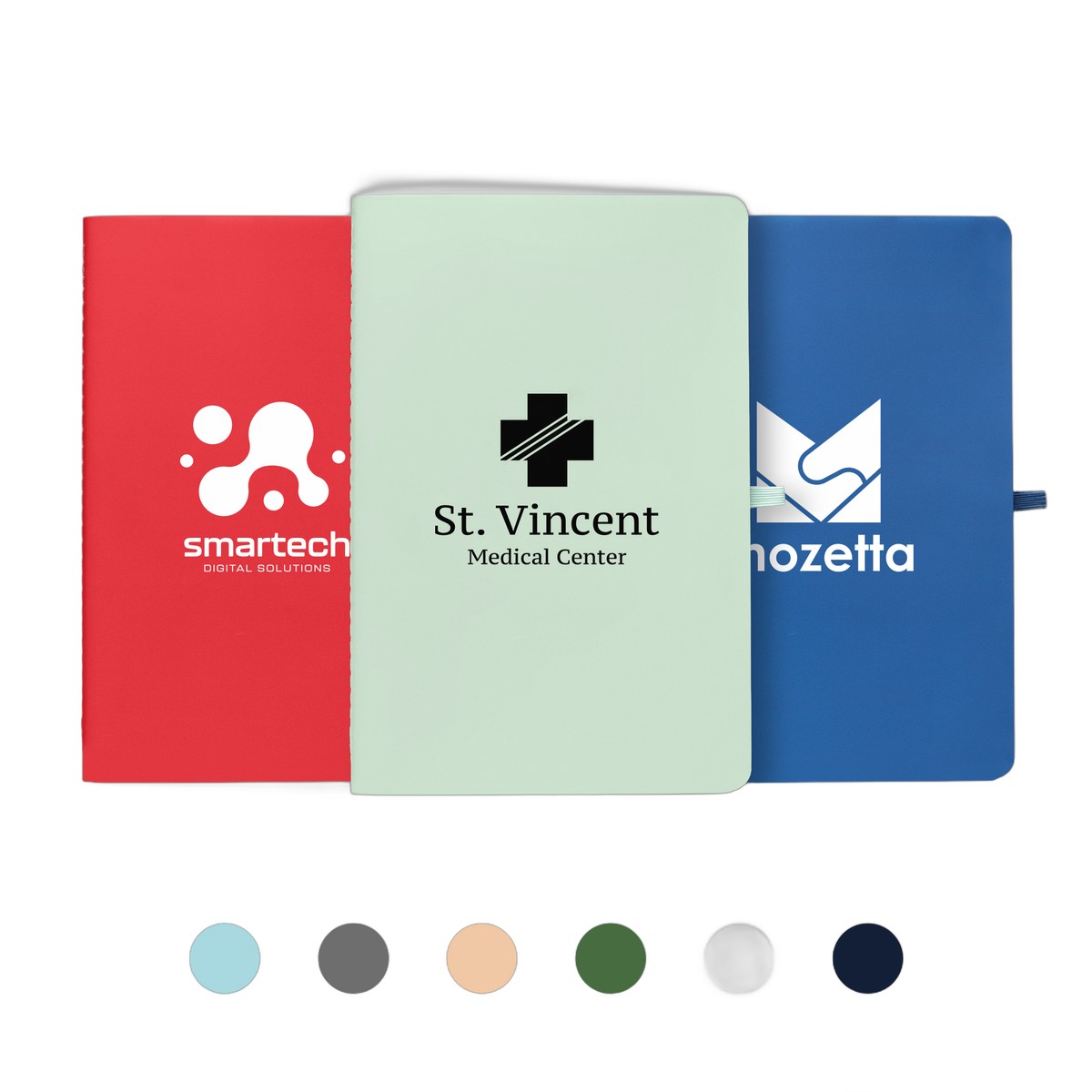 Transform branding with the Monolith Journal, an elegant, modern partner for your notes that stands up to the elements. This A5 soft cover journal is crafted entirely from stone paper, a washable, highly resistant, and chlorine-free paper that is not derived from trees. The 375 g cover has a luxurious soft touch finish and is securely sewn with matching thread. Inside, you'll find 50 sheets of smooth 144 g lined stone paper that is both water-proof and tear-proof, ensuring your notes are safe. Designed for seamless organization, the journal includes a matching color elastic pen loop affixed to the back cover, and the first inside page provides helpful information about this innovative material. 8.19" H x 5.47" W x 0.32" D