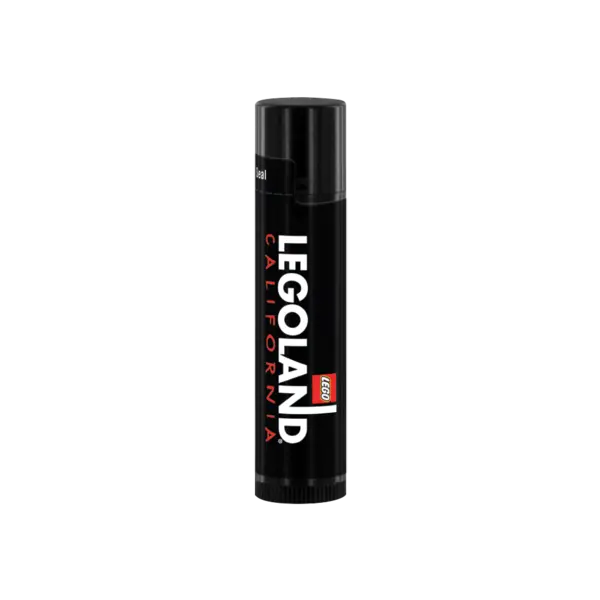 Natural Lip Balm in Black Tube. Beeswax Base. Complies with CPSIA, FDA, Prop 65. 2.625" H x 0.625" Diameter