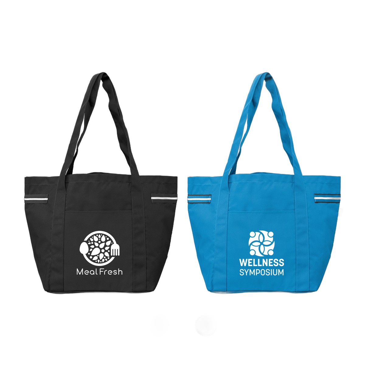Need an adaptable bag? The Newport Tote blends classic style with a modern look. This 20-liter tote's panels and webbing are made from durable 100% post-consumer recycled 600D polyester (rPET). It features the popular shape and is accented with a distinctive webbing stripe detail on the strap, adding a touch of unique style. The versatile bag is perfect for everyday use, featuring a front slash pocket for easy access to essentials. Complete with a Digital Product Passport and sewn-in QR code tag, this tote is positioned as a medium-price-range item that appeals to a broad audience looking for a stylish, functional, and conscious carryall. 12.99" H x 20.08" W x 8.07" D