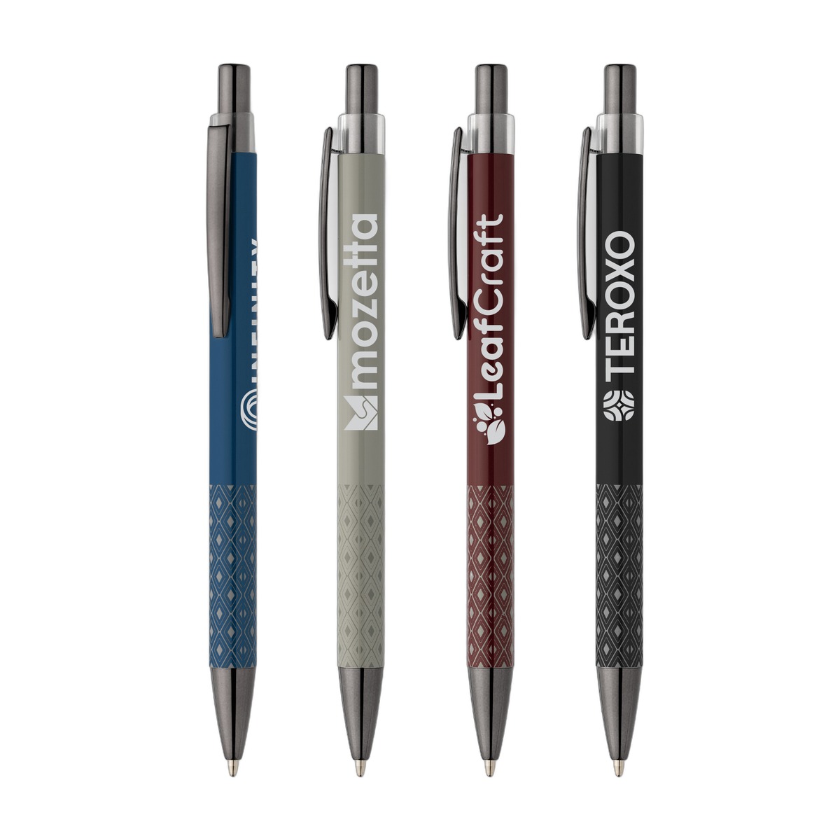 Meet a modern writing tool that beautifully balances alternative materials and sophisticated design. This retractable pen features a sleek, anodized barrel crafted from recycled aluminum. A subtle tonal pattern is printed on the grip area for enhanced feel and style. The pen boasts a high-end look with dark shiny gunmetal finishes on the tip, plunger, and the steel clip, which contrasts beautifully with the colored barrel. Equipped with a slim German Dokumental ink refill, this pen delivers smooth black ink through a 1.0mm tip and provides a reliable 500-meter write out length, making it a stylish and dependable choice for daily use. 5.56" W x 0.39" D