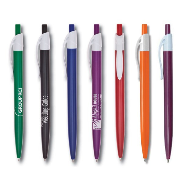 Affordable, colorful, and dependable — the Custom Oak II Click Pen is a budget-friendly essential for everyday promotions. Featuring a sleek retractable click design with vibrant barrel colors and crisp white trim, this pen offers both style and practicality at an unbeatable value.