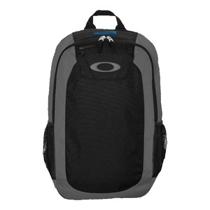 Tough 600D backpack with padded laptop sleeve, fleece-lined eyewear/media pocket, interior organizer panel, and mesh water bottle pockets. Padded adjustable shoulder straps. 20L capacity. Mill#921056ODM. 5" D x 19" H x 12.5" W