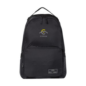 This is a lightweight, 100% nylon (70D/70D ripstop lining) packable backpack. Complies with Prop 65. 5.5" D x 16" H x 11.25" W