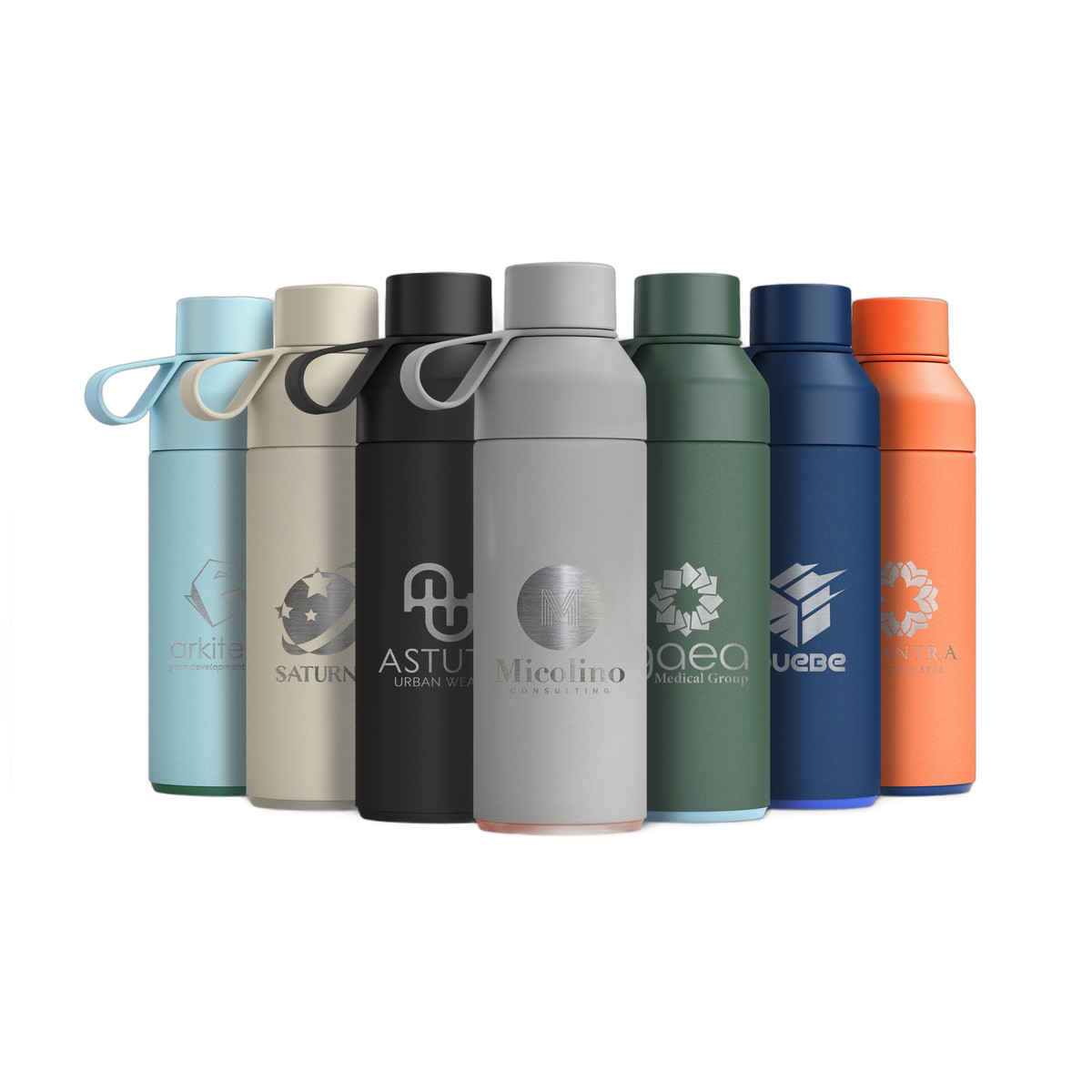 Introducing our Original Ocean Bottle - 17 oz, a cutting-edge Vacuum Insulated Bottle that combines resilience with exceptional performance. Crafted from recycled stainless steel, the bottle features dual openings for effortless filling and cleaning, complemented by a secure twist lid with an anti-leak seal. The silicone loop ensures easy carrying convenience making it an ideal choice for individuals on the go. This bottle maintains drink temperatures, keeping them hot for up to 6 hours and cold for an impressive 18 hours. Every purchase contributes to the collection of 25 lbs of ocean-bound plastic, equivalent to the weight of 1000 plastic bottles. The matte finish adds a sleek touch to the recycled 304 SS body, and the NFC smart chip adds an innovative touch for enhanced impact. Customize your logo with Laser Engraving imprint. Complies with Prop 65. 8.66" H x 2.68" W