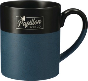 The Otis Ceramic Mug features a two-tone design that combines a speckled base with a matte black top. Choose between color imprinting or our new cutting-edge, dishwasher-safe laser decorating method to add customization to your Otis mug. 3.58" D x 3.50" W x 4.18" H