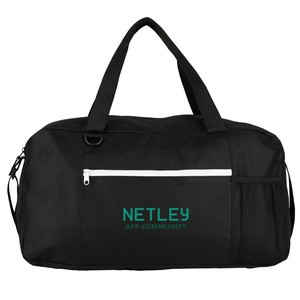 Travel to your next destination with the Pacific Recycled Duffle bag. Made with Recycled 600D Polyester, this duffle bag is simple and sporty for your next trip away or even to the gym. Travel with ease with its top grab handles. It also features a front zipper compartment, open main compartment, and water bottle pocket. Through a partnership with 1% For The Planet, one percent of sales of all EcoSmart® products are donated to environmental nonprofits. 19.48" D x 9.01" W x 10.51" H