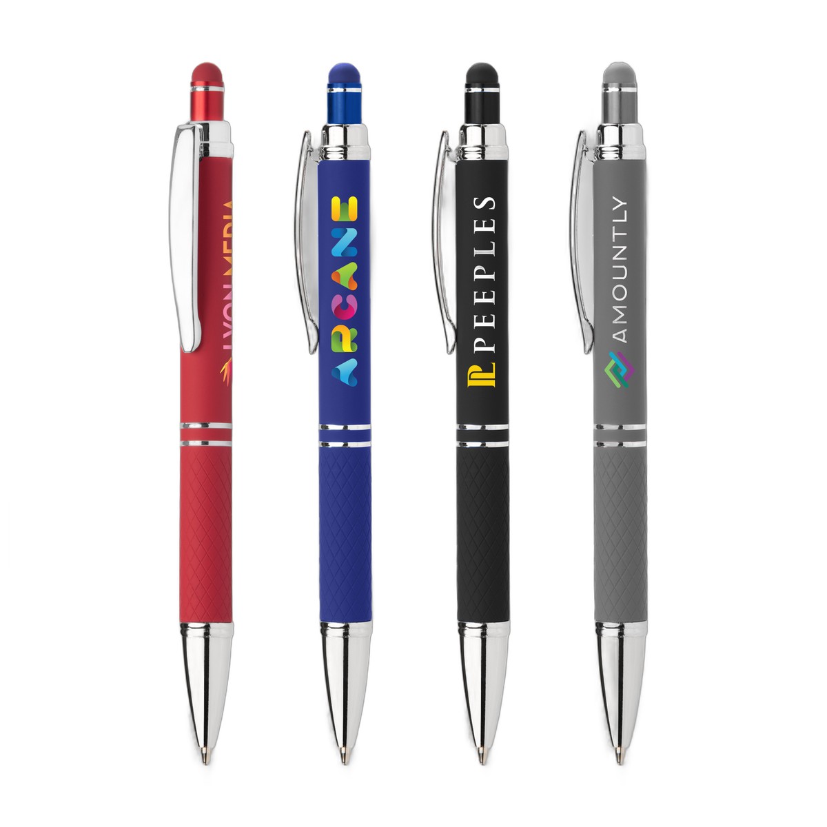 Now with super-smooth gel writing ink, the Phoenix Softy Gel features our luxurious soft-touch rubberized finish, which also coats the diamond-textured grip. Polished chrome accents, trim and clip create a sophisticated look. Choose from a variety of vibrant barrel, grip and matching stylus colors. . Complies with Prop 65. 5.41" W x 0.54" D