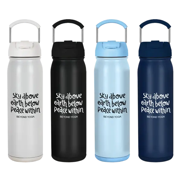 Stay hydrated and organized with the Pocket Hydro 24oz Stainless Steel Vacuum Water Bottle—built for more than just sipping. This double-wall, copper-lined powerhouse keeps your drinks cold or hot for hours, no matter where the day takes you. The twist-off bottom features a clever compartment with a removable divider, perfect for storing pills, supplements, or other small essentials. A dual-function lid gives you options: sip with the straw or chug when you're on the move. With its powder-coated finish for added grip and an easy-carry handle for grab-and-go convenience, this bottle is equal parts functional and stylish. It even comes packaged in an individual Kraft box, making it a smart gift or giveaway with purpose. 10.16" H x 3" D