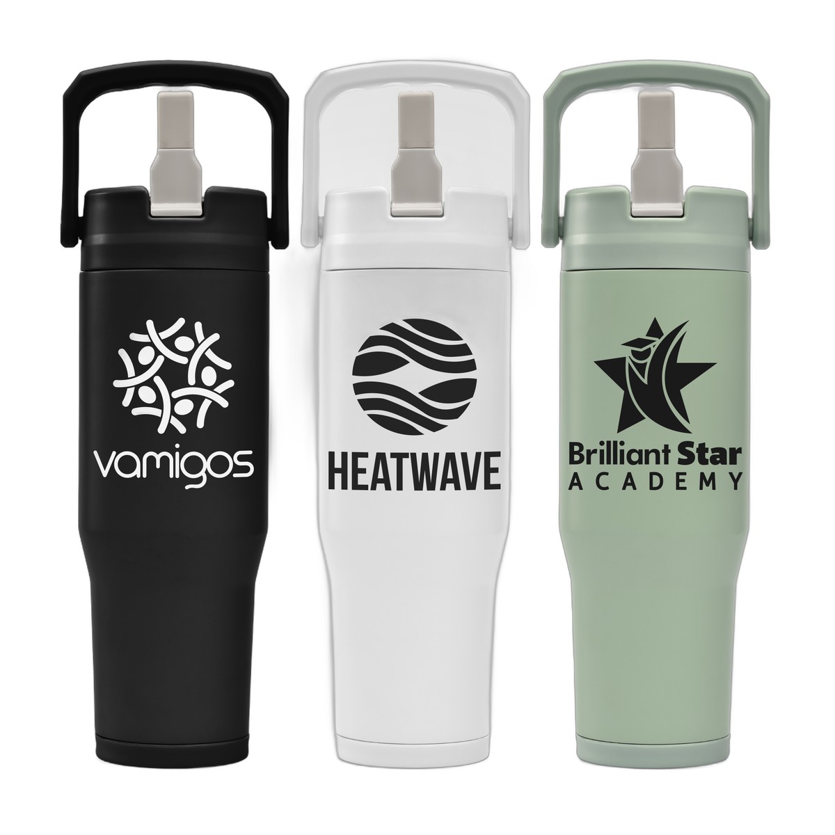 Introducing the Polar Duo - 32 oz. Double-Wall Recycled Stainless Steel Tumbler with Storage Base, crafted from 304 stainless steel for both the outer and inner body, featuring a sleek matte finish. The lid includes a PP base, AS suction nozzle, and silicone components that ensure a secure fit and prevent leaks, along with a 304 stainless steel rivet. With double-wall vacuum insulation, it keeps drinks hot or cold for up to 12 hours. Designed with a handle for easy carrying, a lid with a straw for convenient sipping, and a screw-on bottom storage compartment ideal for pills or small essentials, this BPA-free, FDA-approved tumbler is perfect for everyday use. Complies with Prop 65. 11.18" H x 2.99" W