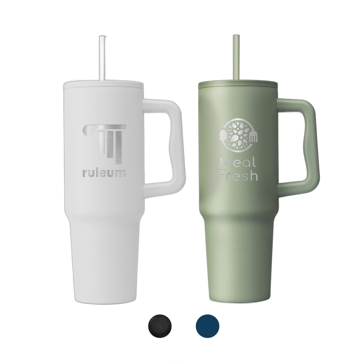 Introducing the Polar Pro - 40 oz. Double-Wall Recycled Stainless Steel Tumbler with Straw – a 40 oz. marvel crafted from recycled 304 stainless steel. Its matte finish, ergonomic handle, and compatibility with car cup holders make it both stylish and practical. The recycled PP lid and powder coating ensure longevity, while the vacuum insulation keeps hot drinks warm for 8 hours and cold ones refreshing for 24 hours. Elevate your hydration experience with this chic companion. Your logo will be imprinted in Silkscreen. Complies with Prop 65. 10.30" H x 2.95" W