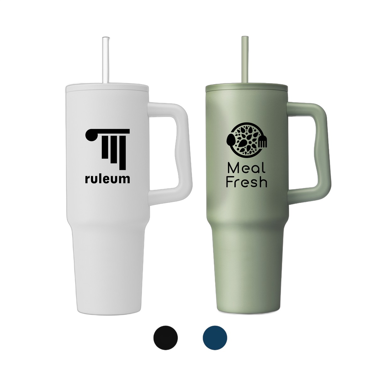 Introducing the Polar Pro - 40 oz. Double-Wall Recycled Stainless Steel Tumbler with Straw – a 40 oz. marvel crafted from recycled 304 stainless steel. Its matte finish, ergonomic handle, and compatibility with car cup holders make it both stylish and practical. The recycled PP lid and powder coating ensure longevity, while the vacuum insulation keeps hot drinks warm for 8 hours and cold ones refreshing for 24 hours. Elevate your hydration experience with this chic companion. Your logo will be imprinted in Silkscreen. Complies with Prop 65. 10.30" H x 2.95" W