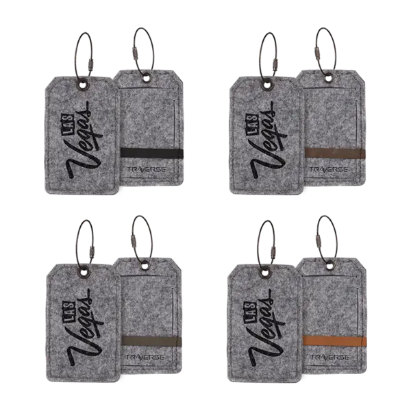 For every 58 identical black suitcases moment waiting for you at the bottom of that baggage claim merry-go-round. Since the best gifts solve real problems for the receiver the Poplar is a must have for your next gift giving excursion. Just say NO to red ribbons, duct tape, or neon extravaganzas hanging off your non-descript baggage, just attach our artisan crafted felt luggage tag and snag that bag on the first round… your Uber is waiting. Complies with Prop 65. 4.75" W x 3" H