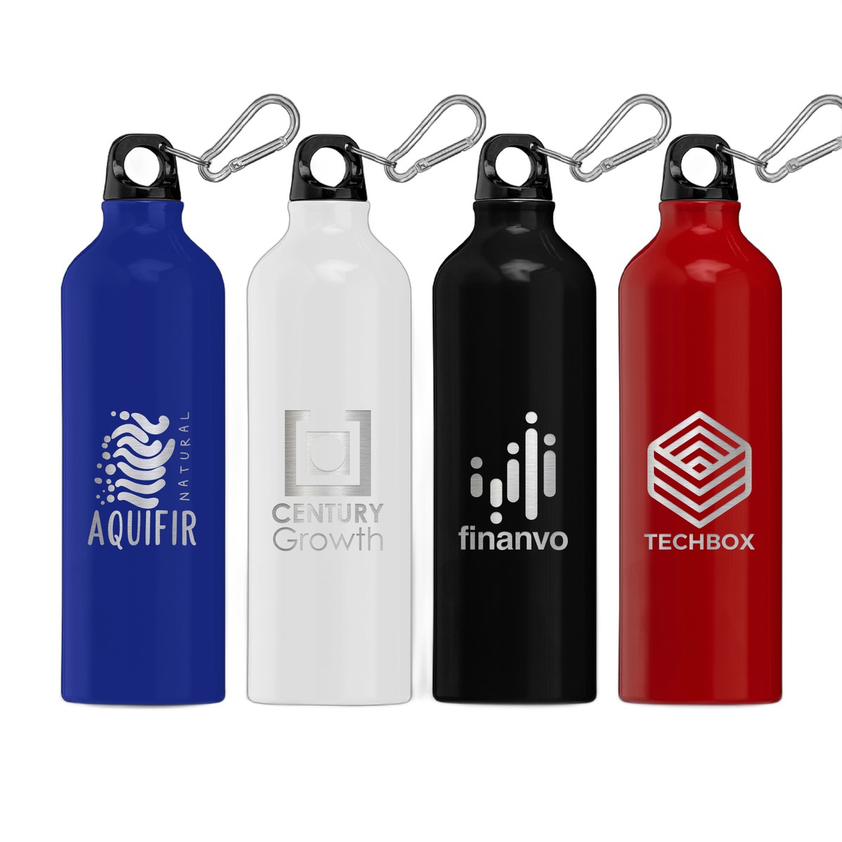 Our Portland Plus 27 oz Aluminum Water Bottle is ideal for promoting your brands with drinkware. Company logos and messages are provided plenty of brand exposure and offer a wide range of design options. The spillproof design and handy included carabiner will help make this bottle a favorite in your client's collection. . Complies with Prop 65. 9.96" H x 2.87" W