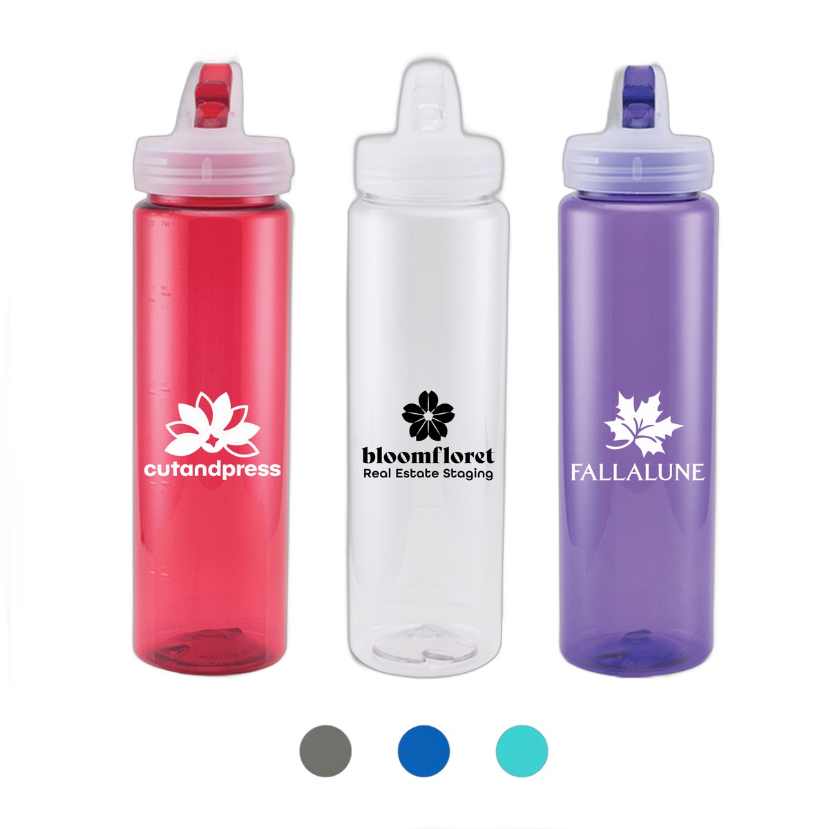 Made in USA. Take your brand on an adventure with the 32 oz. Pro+ Water Bottle. Available in popular translucent colors, this bottle is made of shatterproof PET plastic. It features a carrying loop for easy transport, and a flip-top, quick-sip spout for fast hydration. Chic, functional, and durable. BPA-free and lead-free. CA Prop 65 Compliant and FDA Approved. Hand wash only. Complies with FDA, Prop 65. 11.22" H x 2.95" W