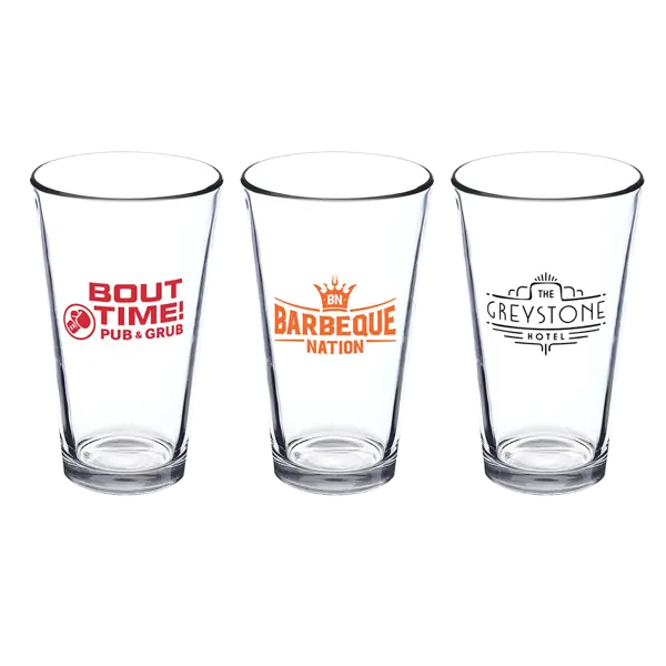 The perfect vessels for your favorite drinks! With a sturdy 16-ounce capacity, these glasses offer a comfortable grip and timeless design, making them ideal for everything from craft beers to sodas. Elevate your drinking experience with these durable and versatile Pint Glasses, perfect for any occasion. Cheers to quality craftsmanship and memorable moments! 3.5" Diameter x 5.75" H