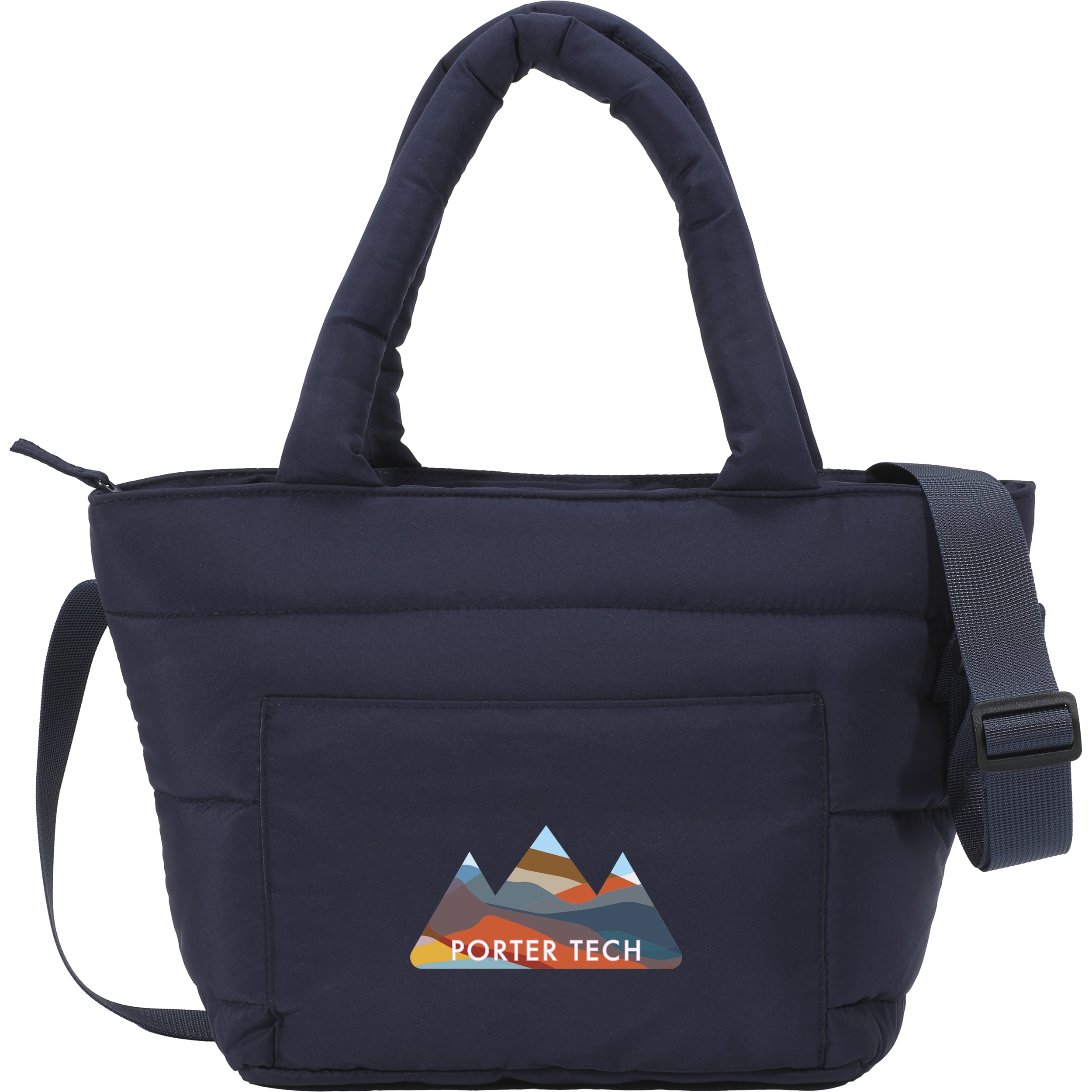 The Puffer Tote Cooler is the perfect size to keep your food chilled for picnics at the park, or groceries cool on the way home from the store. Crafted from quilted rPET, this tote cooler has a super soft, puffy exterior. The sturdy quilted handle and matte finish add a touch of luxury, and the ultra-lightweight design feels like you're carrying a cloud. Featuring a large zippered main compartment for easy access, with a PEVA lining for added durability and insulation. A front slash pocket provides additional storage, the large, quilted grab handles provide a comfortable grip, and sturdy shoulder strap is adjustable to accommodate whoever is lucky enough to carry it. 5.50" D x 14.00" W x 8.00" H