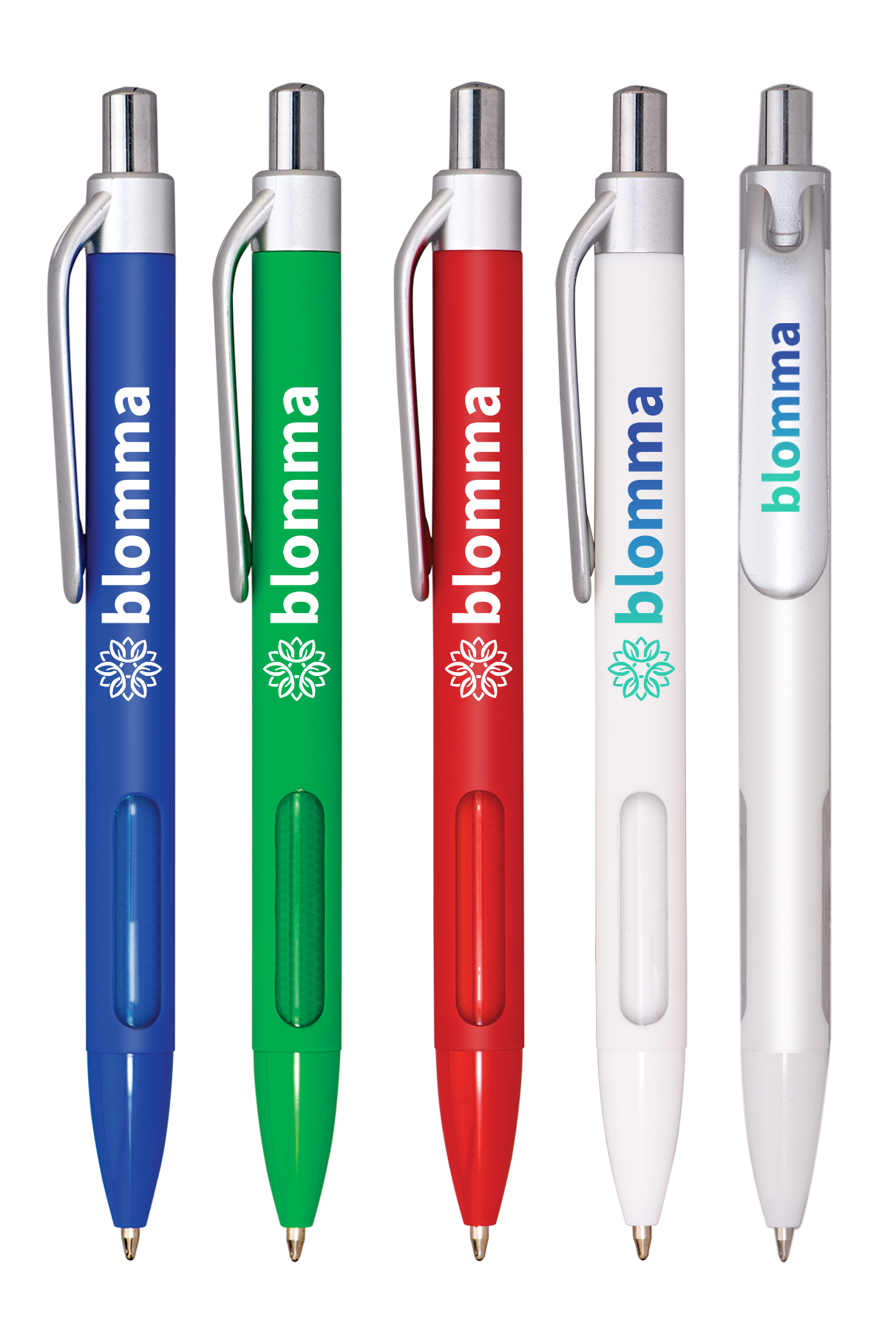 What a promo catch! This brightly colored jumbo pen features a soft-touch finish for writing comfort wherever you grip. The oversized silver-toned clip provides the perfect canvas for optional full-color decoration, or the generous imprint area on the barrel is sure to make your message pop in black, white, or optional full color. Material: Rubberized Plastic Standard Decoration Includes: Silk Screen on Barrel, Black or White imprint only All Available Decoration Options: Screen Print: 1.75" W x 0.5" H Barrel Full Color Digital: 2" W x 0.25" H Barrel Full Color Digital: 1.25" W x 0.25" H Clip Tip Type: Ball Point Mechanism: Push Retractable Click Here For Virtual Proofing Tool [https://www.hpgspectra.com/?item=293/] Standard Packaging: Bulk Tags: Plastic, Cost Effective, Popular, Pen, Tradeshow, Trade, Show, Desk, Office, Advertisement, College, Grade, Writing, Merchandise, Study, High School, University, Essay, List, Home