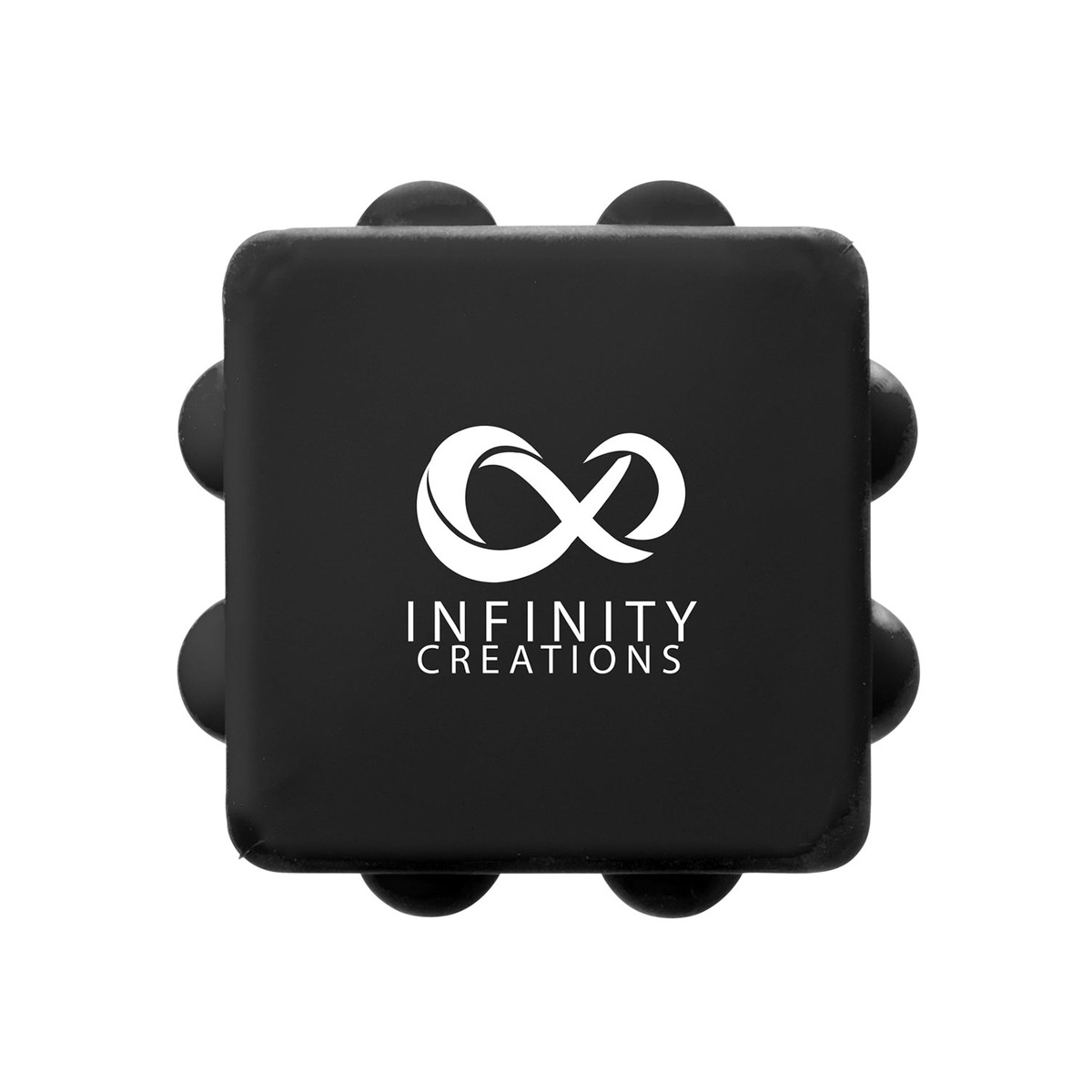 Silicone. Push the bubbles in, then squeeze the cube to pop them out. Each satisfying pop provides instant relief, melting away tension and restoring calmness. 2.2000" L x 2.2000" W x 2.2000" H