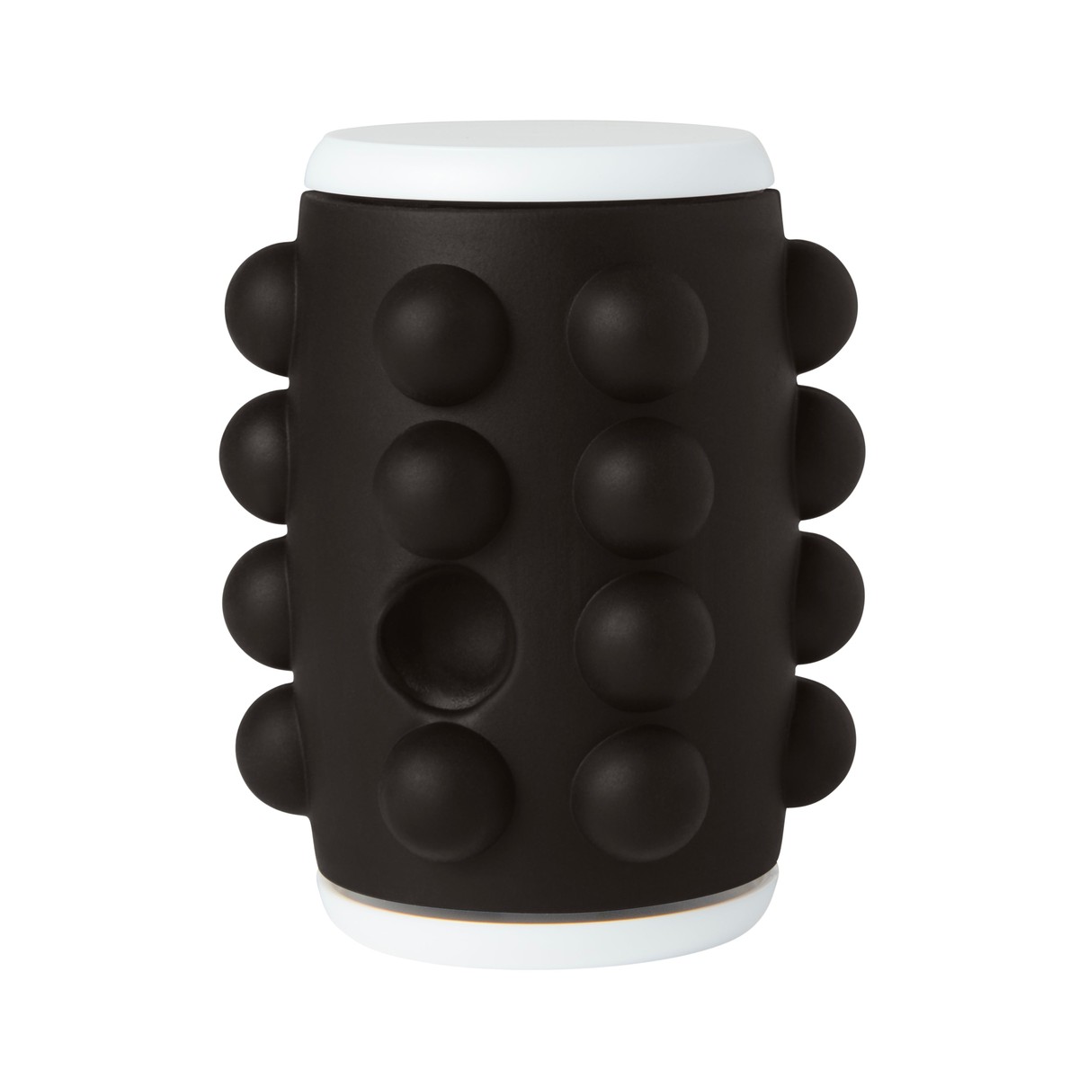 Silicone push pop toy with ABS plastic frame. Push, pop, and spin - now with even more fun and fidgety action! Press the bubbles in, then squeeze to pop them out. Grip the top and bottom white panels and spin for a satisfying twist. 2.6000" H x 2.0000" Diameter