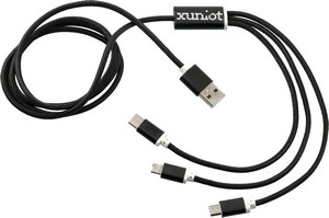The Realm 3-in-1 Long Charging Cable features a USB-A tip on one side with a USB Type-C tip, a USB Micro tip, and a 2-in-1 dual-compatible tip for both Apple iOS and Android devices. It supports a charge of 2A current. This multipurpose aluminum charging cable measures 47" long, or approximately 3.92 feet. It is recommended to use an AC adapter, power bank or car charger to charge devices instead of using outputs from laptop or computer as power source. 47.00" D x 0.69" W x 0.31" H