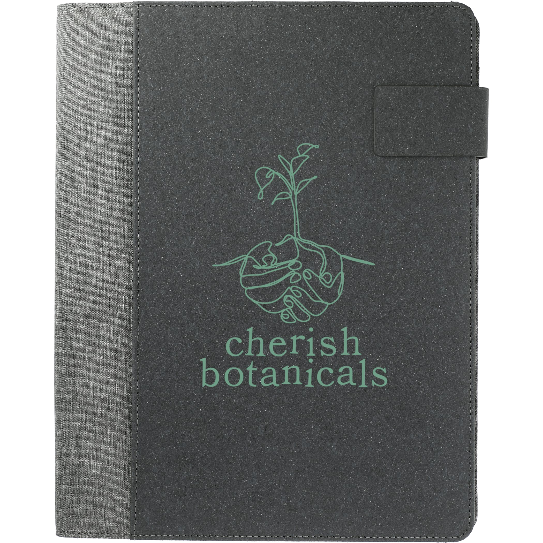 The Reclaim RPET 5000 mAh Wireless Charging Writing Pad with FSCr Mix Paper is a rechargeable powerbank that supports wireless charging for a wide range of mobile devices, including the iPhone 8 and later generations. It comes with one USB to Micro USB cable, enabling you to charge any device with a Micro USB input or recharge the Reclaim itself. To charge an iPhone 7 or earlier series that does not feature built-in wireless technology, simply connect the Micro USB cable. The Reclaim RPET doubles as a journal, containing one 8.5'' x 11'' FSCr Mix writing pad with 30 sheets of recycled lined paper. For added functionality, the writing pad features a front pocket, interior mesh pocket, snug elastic pen loop, magnetic closure clasp, and card organizer pockets. 0.80" D x 9.45" W x 12.20" H