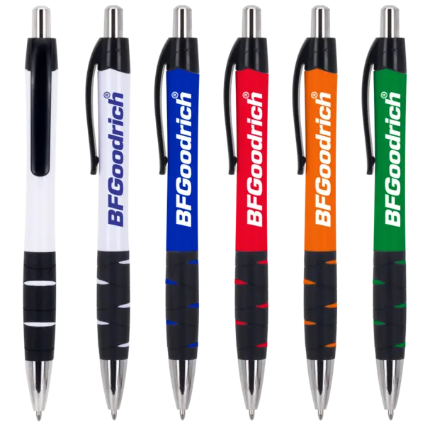 Crafted from solid colored recycled ABS plastic, this pen blends eco consciousness with everyday practicality. The black crisscross grip isn't just a design element—it is your ticket to comfortable, slip free writing sessions. A sleek chrome plunger and bottom tip add a polished, professional touch, while the reliable black ink ensures each stroke is sharp, clear, and confident. Make your mark on the world responsibly and effortlessly with Recoil.FEATURES-Solid colored recycled ABS-Black crisscr. 5.55" L x 0.43" D