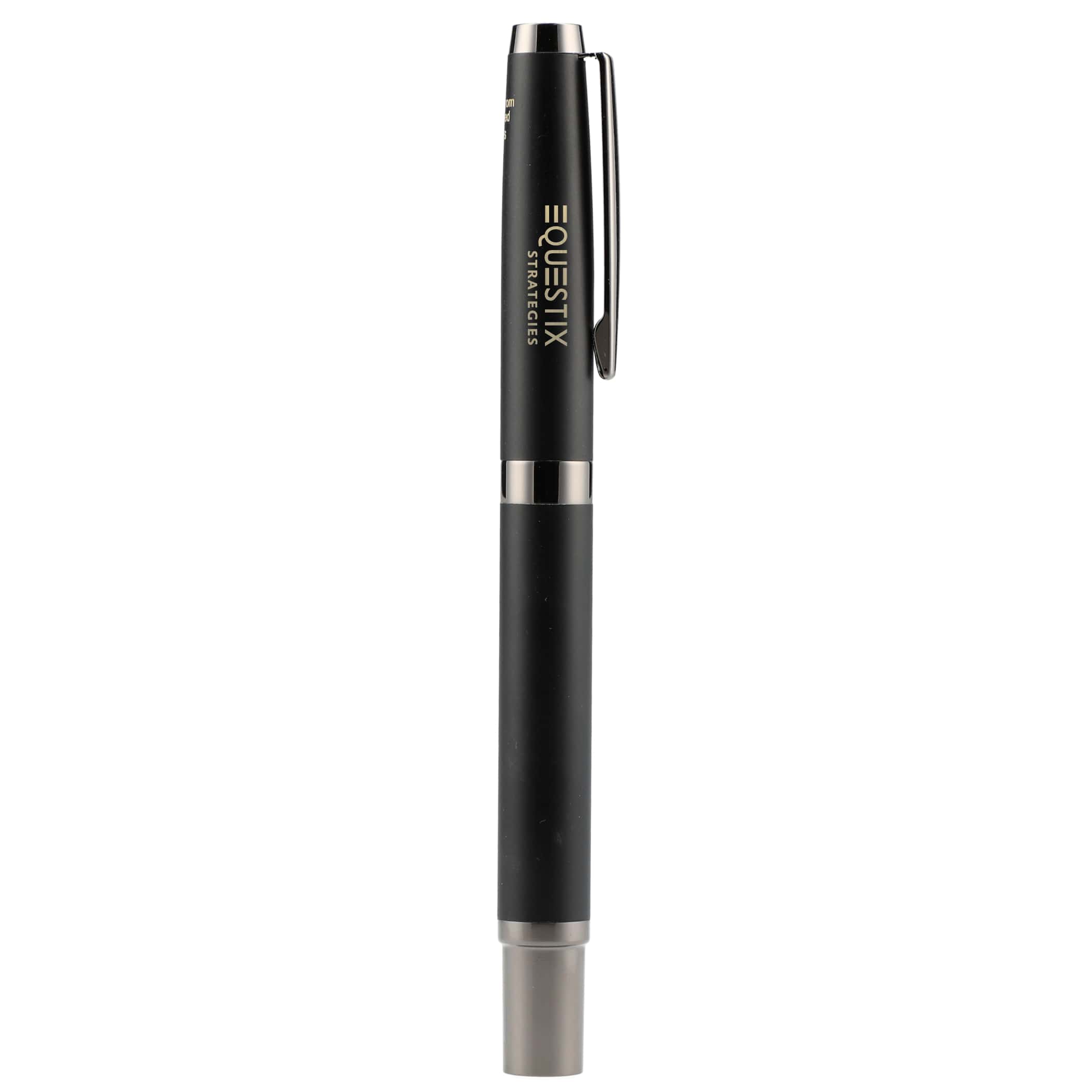 The Recycled Brass Ultra Gel Roller Ball features a recycled brass barrel and gunmetal chromed metal accents. Includes 0.7mm tip and 400 meters of smooth black gel ink. NOTE: Laser finish will look like brass/gold and not silver. 5.31" D x 0.47" W x 5.31" H