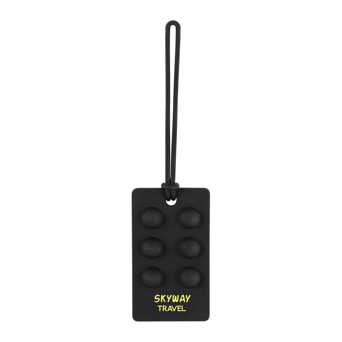 Recycled Silicone pop bubble luggage tag designed to have fun and relieve stress. Personal identification area on back of luggage tag (add your info with any standard pen or sharpie, pencils not recommended, not included). Silicone strap used to attached tag to luggage handle. Press bubbles to play, to release press another bubble. 50% of this item's total composition is made from recycled materials, and the material itself contains 100% post-consumer recycled content. 1.7000" W x 2.9000" H x 0.3000" D