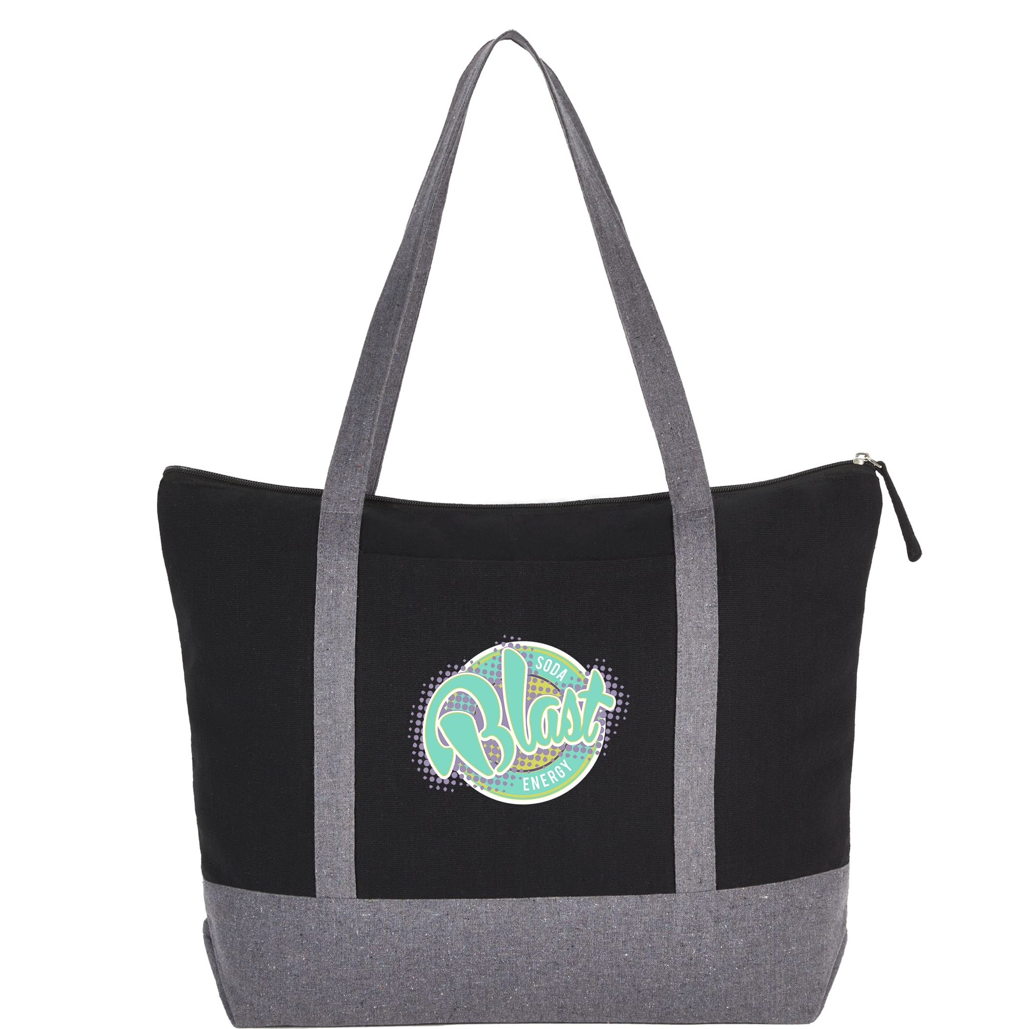 The Repose 10oz Recycled Cotton Zippered Tote is made from pre-consumer recycled cotton and features on-trend color blocking. It also features double handles, a front slash pocket and a zippered main compartment. Through a partnership with 1% For The Planet, one percent of sales of all EcoSmart® products will be donated to nonprofits dedicated to protecting the planet. 4.00" D x 18.25" W x 13.50" H