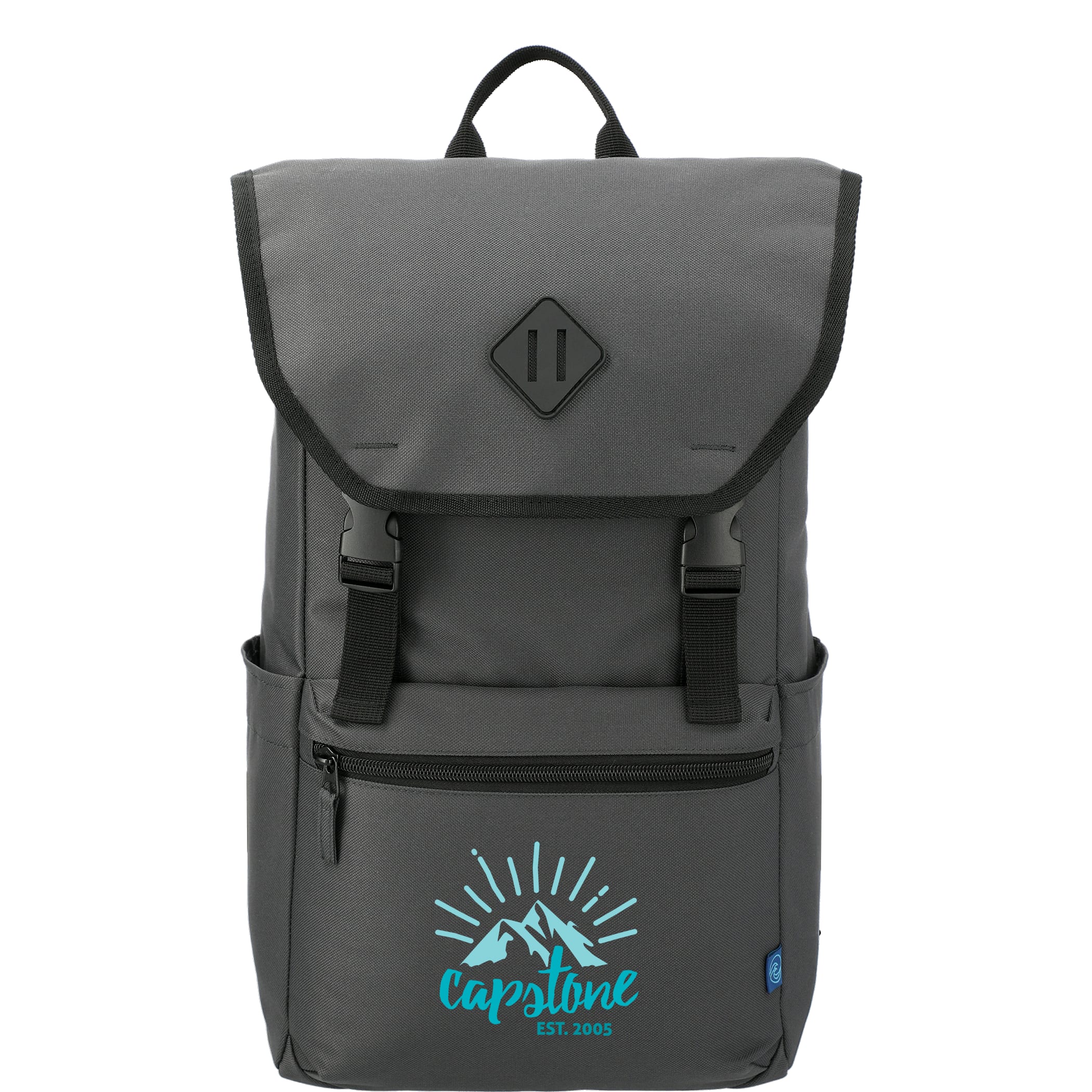 Saving the ocean one bag at a time! The Repreve® Ocean 15'' Computer Rucksack is made from recycled ocean plastic. This rucksack features two side water bottle pockets and a zippered front pocket for easy storage. The main compartment includes a laptop sleeve and a cinch closure and buckles for easy closure. Through a partnership with 1% For The Planet, one percent of sales of all EcoSmart® products are donated to environmental nonprofits. 5.50" D x 11.50" W x 18.50" H