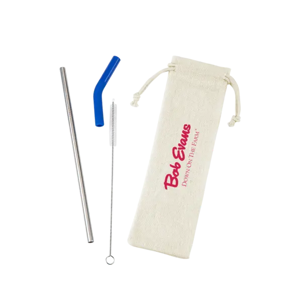 18/8 Food grade stainless steel straw with detachable silicone spout for easy cleaning. Includes a cleaning brush and jute drawstring pouch. 9.4" H x 2.75" W