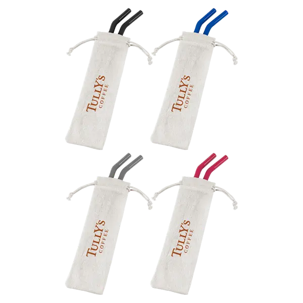 Set of two 18/8 food grade stainless steel straws with detachable silicone spouts for easy cleaning. Includes 2 cleaning brushes and a jute drawstring pouch. 9.4" H x 2.75" W