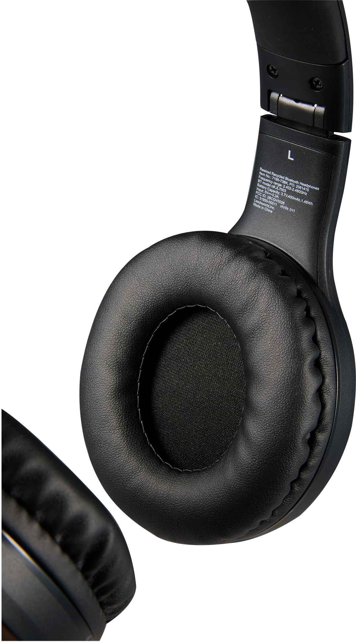 The Rewired Recycled Bluetooth Headphones deliver an immersive audio experience with premium stereo sound and up to 40 hours of playback at maximum volume. Made from recycled plastic, these eco-conscious headphones provide both comfort and quality, with extra plush earpads to keep you comfortable on long flights, train rides, or workdays. Built-in music controls and a microphone allow you to manage audio, activate your voice assistant, and answer calls—all without reaching for your phone. Designed for flexibility, these headphones are collapsible for easy transport and can be worn comfortably around your neck. Enjoy your music through Bluetooth or connect with the included 39'' 3.5mm aux cable. The headphones recharge fully in 2 hours with the included Type-C USB cable. Bluetooth Version 5.4 provides a reliable connection within a 10-meter (33-foot) range. 7.10" D x 1.10" W x 3.00" H