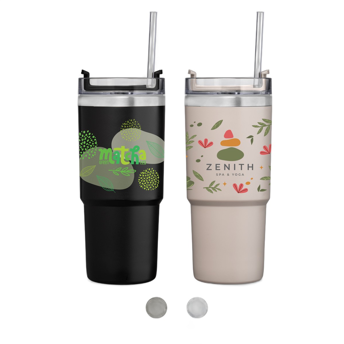 Embrace sustainable hydration with the Recycled Stainless Steel Double Wall Tumbler with Straw - 25oz. This isn't just a tumbler; it's a sleek, everyday essential designed for versatility and modern lifestyles. Sporting a matte finish, this 25oz tumbler features smart double-wall construction: recycled 304 stainless steel on the inside and recycled polypropylene on the outside, making it both lightweight and incredibly durable. The clear press-on lid, made from AS plastic, includes a smooth PP slider and straw, ensuring effortless sipping for both hot and cold beverages. This BPA-free and FDA-approved tumbler is spill-resistant and cupholder compatible, offering a minimalist design ideal for commuting, work, or at-home hydration. It's a thoughtful choice for conscious living. 8.46" H x 3.50" W
