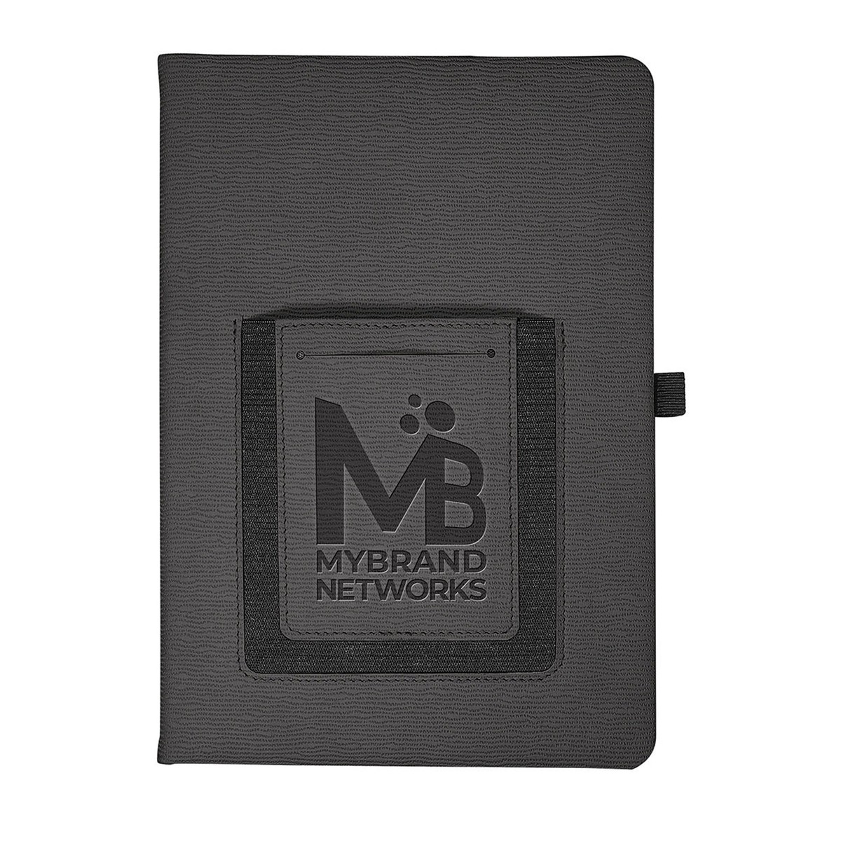 Includes approx. 80 ruled sheets of 80g cream paper. Features elastic pen holder (pen sold separately) and ribbon bookmark. Front smartphone pocket measures approx. 3.5"w x 4"h (fits most smartphones). Document pocket on inside back cover. 5.6250" W x 8.2500" H x 0.6250" D