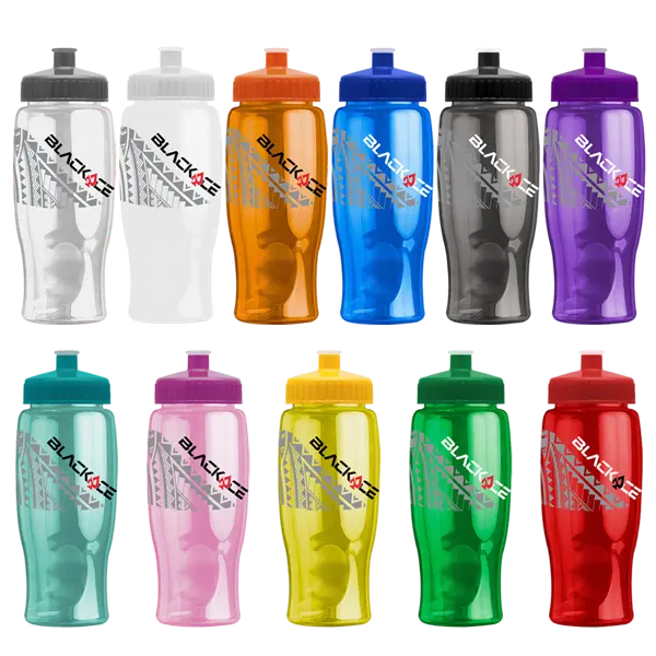 Stay refreshed and in motion with the Rotation 27oz Transparent Contour Bottle, the perfect blend of style, function, and visibility. Made in the USA, this sleek, contoured sports bottle features a push-pull lid and a transparent body so you can easily track your hydration. With mix-and-match bottle and lid colors, it's a standout promotional piece for teams, events, and active lifestyles. Made from BPA-free, FDA-compliant materials, this bottle is safe, durable, and built for everyday use. Hand wash only and do not microwave. 3.5" W x 3.5" L x 8.75" H