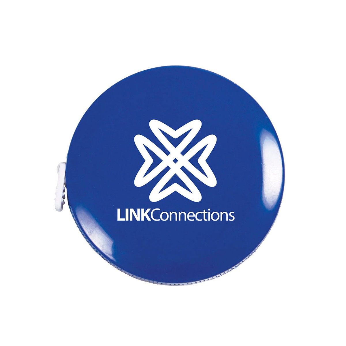 Round ABS plastic measuring tape with long flexible PVC ruler (5 ft/60 in). Push button on back to retract tape. Features measurements in inches and centimeters. 2.0000" L x 0.5000" D