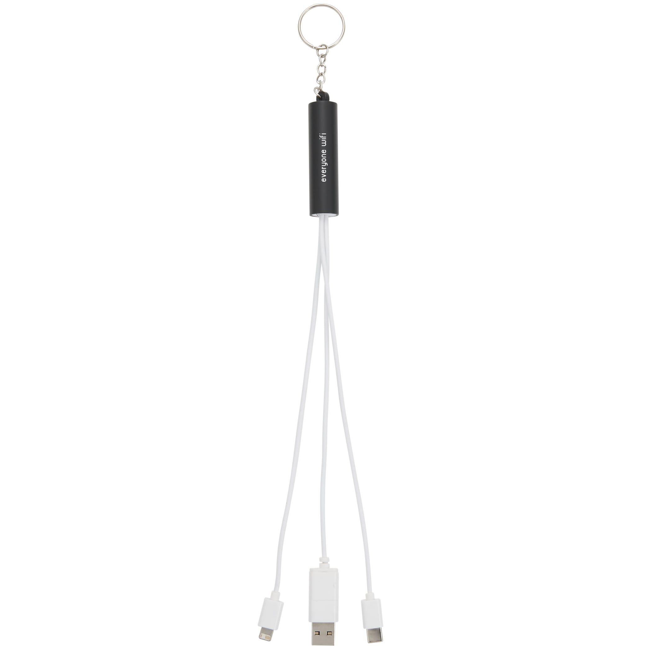 The Route Light Up 5-in-1 Charging Cable is a versatile and portable charging solution, designed to keep your devices powered wherever you go. It features a USB-A input adapter, a Type-C input tip, and multiple output tips, including a USB/Type-C and a 2-in-1 dual compatible tip for both iOS and Android devices. The cable length, excluding the head, is 8.5 inches, making it compact and easy to carry. For added convenience, the cable includes a keychain attachment. When laser-engraved, the cable lights up, adding a unique visual element. Note: Not compatible with iPad Pro. For optimal charging, use with an AC adapter, power bank, or car charger rather than a laptop or computer. 11.13" D x 0.63" W x 0.63" H