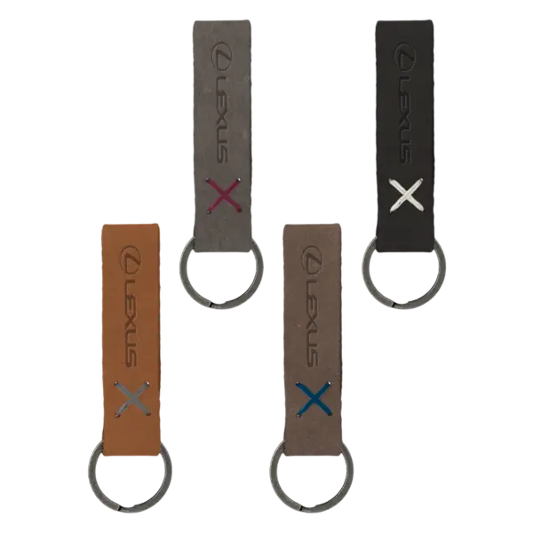 What's more memorable then saddling up to ride off into the sunset? Make sure they hear the comforting creak and lingering scent of handcrafted leather as you twirl your keys and make your leave. Choose from 5 domestic, USA Made, leather colors and customize to match your company logo with 11 Irish waxed linen accent stitching colors to create something truly unique. Complies with Prop 65. 0.75" W x 3.5" H
