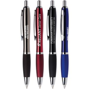 Multifunction version of our Santorini executive pen. Ergonomically shaped in high gloss enamel, silver accents and a colorful reflective grip. Converts to a bright and powerful LED flashlight with a double click. Material: Metal Standard Decoration Includes: Lasered, 1 Location All Available Decoration Options: Laser Engraved: 2" W x 0.25" H Barrel Revolution Engraving: 2" W x 0.5" H Barrel Tip Type: Ballpoint Mechanism: Push Retractable Standard Packaging: Individually Cellophaned Tags: popular, metal, flashlight, accessory, multi-function, multi, light, dark, gift, desk, office, executive, advertisement, college, grade, writing, merchandise, pen, high school, university