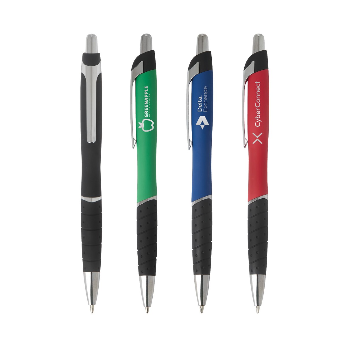 Elevate your writing style with the Script Plunge-Action Ballpoint pen. A perfect fusion of style and functionality, this pen has a rich in color rubberized finish barrel, complemented by a black rubber grip for optimal comfort during extended use. The chrome clip and trims add a touch of elegance, making a bold style statement. With extra smooth black ink, this ballpoint ensures a seamless writing experience. Complies with Prop 65. 9/16" W x 5 7/16" H x 1/2" D