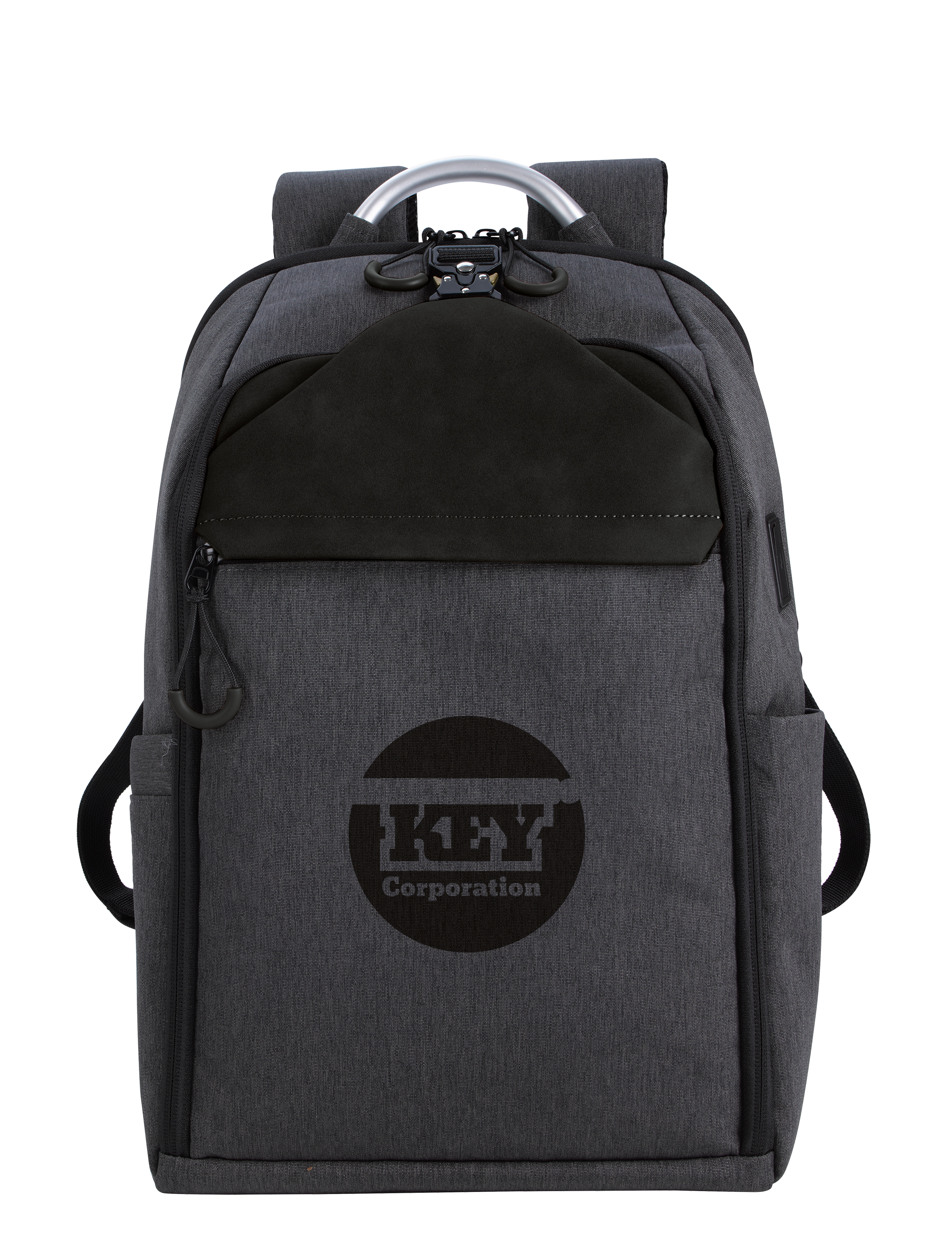 An on-the-go work life just got easier with this commuter backpack crafted from durable heathered RPET polyester and trimmed with stylish metal and leather-like PU accents. This multifunctional bag is decked out with features, including a TSA-friendly laptop compartment, a detachable inner organizer panel for a mobile office solution, and an anti-theft zippered back pocket for added security. An expandable PEVA-lined side pocket offers extra storage. Stay powered up with dual USB and Type C ports for pairing with SCX Design™ and other power banks. With its ergonomic design and ample compartments, this backpack is the perfect companion for modern travelers, commuters, and work-from-home adventurers. 37% of overall product made of post-consumer recycled PET. 12.5" W x 19" H x 7" D