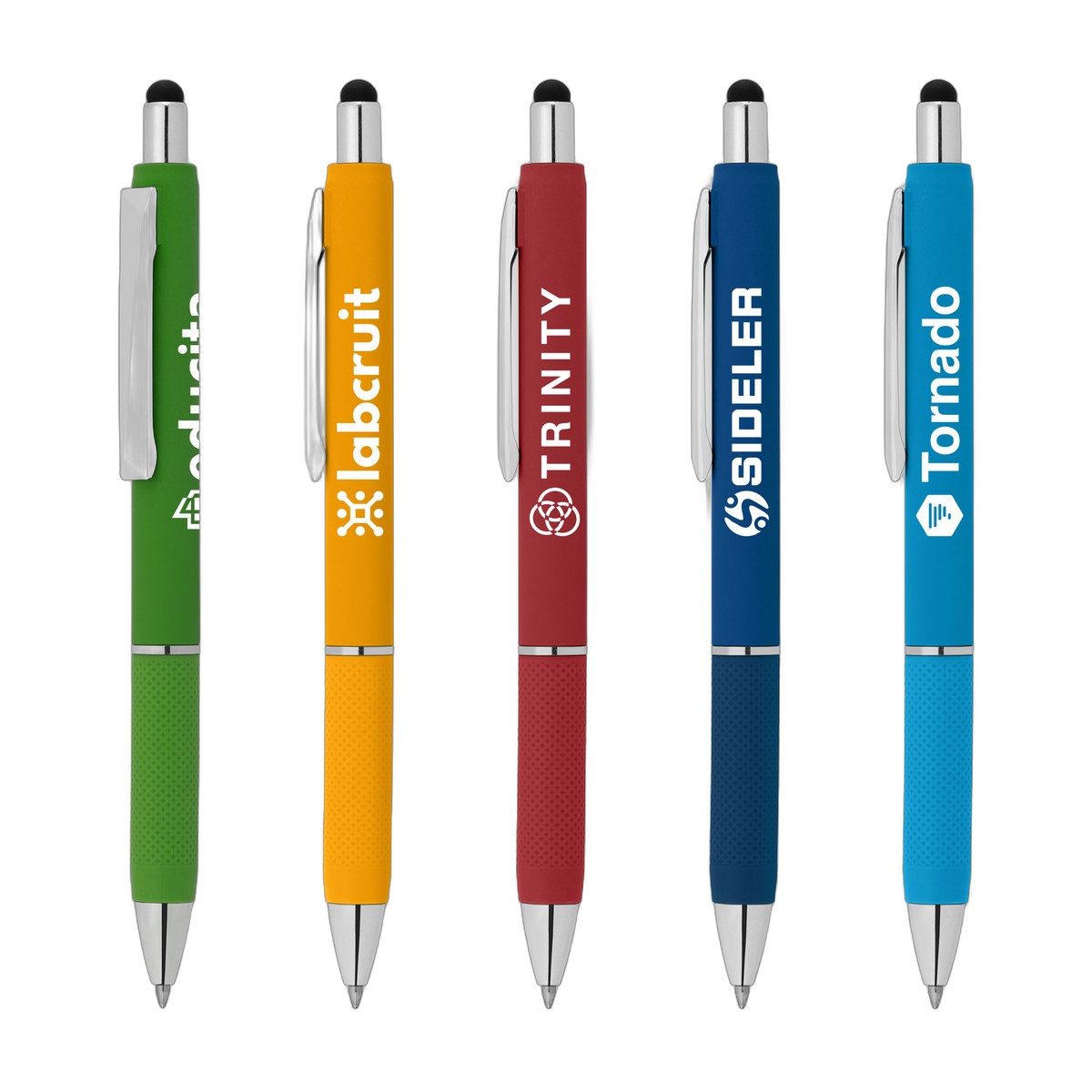 Experience the effortless joy of writing with our Serena Retractable Gel Stylus Pen. This retractable plastic pen combines vibrant colors with a comfortable grip, offering a smooth and enjoyable writing experience with its sleek gel ink. The bright ABS plastic barrel features a colorful rubber finish, while the chrome-trimmed tip, ring, clip, and plunger add a touch of sophistication. The pen is not only a pleasure to write with but also includes a black stylus for seamless transitions between paper and digital devices. Complies with Prop 65. 5.71" W x 0.43" D