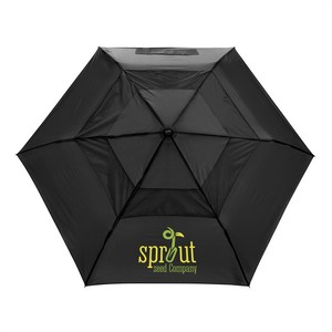 No matter the weather, Shed Rain has you covered. Combat the sun?s harsh rays with this 42" arc umbrella that provides UPF 50+ protection. Its vented construction helps prevent the umbrella from inverting, and it?s 3-section steel shaft and ribs deliver additional durability. At the push of a button, it automatically opens or closes, so it?s ready for action whether you?re enjoying a day at the ballfield or the beach. Canopy is made of PFAS-free material. Shed Rain covers this product with a lifetime warranty (excluding imprint). 2" Diameter x 18.5" L