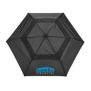 No matter the weather, Shed Rain has you covered. Experience ultimate on-the-go convenience with this compact umbrella that features a 42" arc and an effortless auto-open feature. Crafted with a vented PFAS-free canopy and durable steel shaft and ribs, it?s engineered to withstand windy conditions without inverting. Complete with a cushioned grip and matching fabric/mesh sleeve with bungee-cord wrist strap, it?s a practical addition to your work or school bag. Shed Rain covers this product with a lifetime warranty (excluding imprint). 2.25" Diameter x 12.5" L