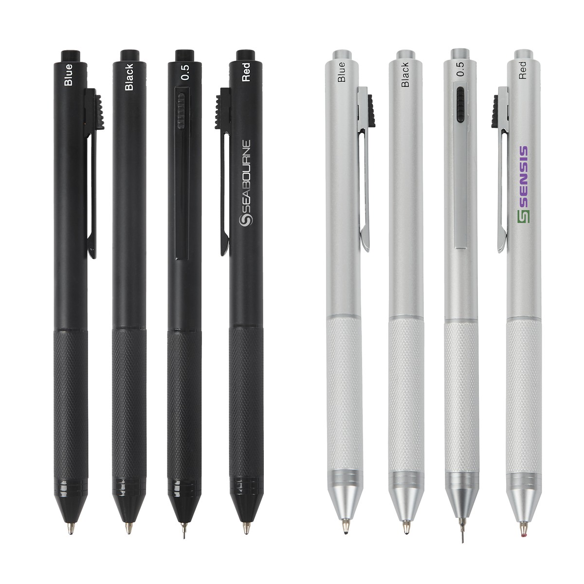 The 4-in-1 Sketch Ballpoint/Pencil is a versatile writing instrument that combines functionality with style. Whether you want to write in bold black, everyday blue, striking red ink, or erasable pencil, all your writing needs are covered in this one elegant package. It features an etched barrel that provides a slip-resistant grip, brass construction, slim-line gravity mechanism, pencil eraser under the plunger top, and the 1.0mm ballpoint refills and 0.5mm pencil lead are replaceable. The Sketch is the ultimate writing tool for those who demand versatility and sophistication in one package. Complies with Prop 65. 1/2" W x 5 13/16" H x 3/8" D